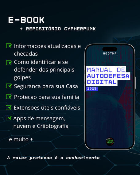 E-book didático sobre Seguraranca Digital, com dicas Cypherpunks e as melhores ferramentas para você se proteger e se libertar na internet!!